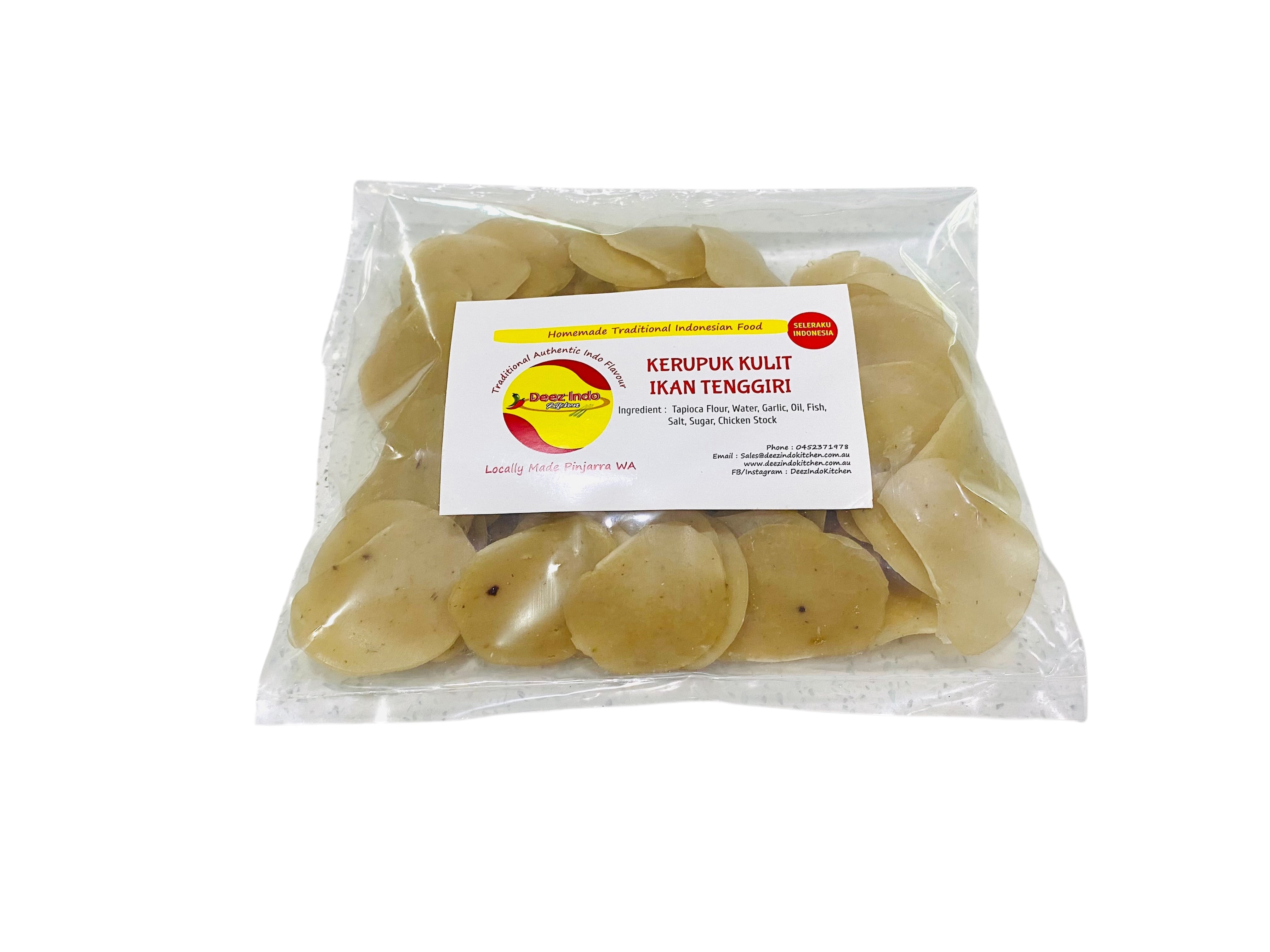 Made from mackerel (ikan tenggiri), without the skin, and blended with tapioca starch and select seasonings, these crackers are expertly oven-dried to achieve a light, crispy texture.